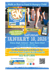 The Health First Fight Child Hunger 5K raises funds for two local charities to meet the needs of as many hungry children in Brevard County as possible. This family-friendly Run/Walk will make memories for you, and a huge difference for children at risk of hunger through The Children’s Hunger Project and the Sharing Center of Central Brevard. These two organizations work hard every day to ensure children have adequate nutrition. This year’s event promises to be our biggest yet, featuring: Event T-shirts for participants, a delicious Pancake Breakfast, Awards Ceremony and music, and Vendor booths and Goodie Bags. Sponsorship is also available, contact Sabra Zickuhr at sabra@thechildrenshungerproject.org, 321-610-1900 ext. 104